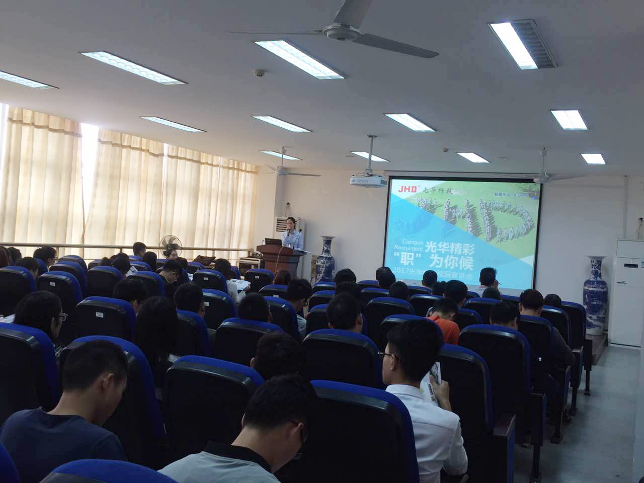 豫章故郡,洪都新府,繼校園招聘宣講會(huì)武漢站后,光華科技校園招聘團(tuán)隊(duì)于10月18日來到了歷史文化名城——江西省南昌市。在南昌大學(xué)的理生樓化學(xué)學(xué)院報(bào)告廳,光華科技人力資源部門同事與同學(xué)們進(jìn)行了熱烈的交流,深入介紹公司科研、技術(shù)、規(guī)模、布局等各方面的實(shí)力。