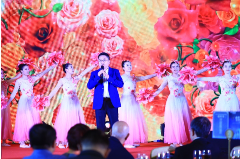 公司領導氣勢磅礴的朗誦加上公司女同事們的舞蹈,展現出一幅花團錦簇的春景,讓人沉醉其中。